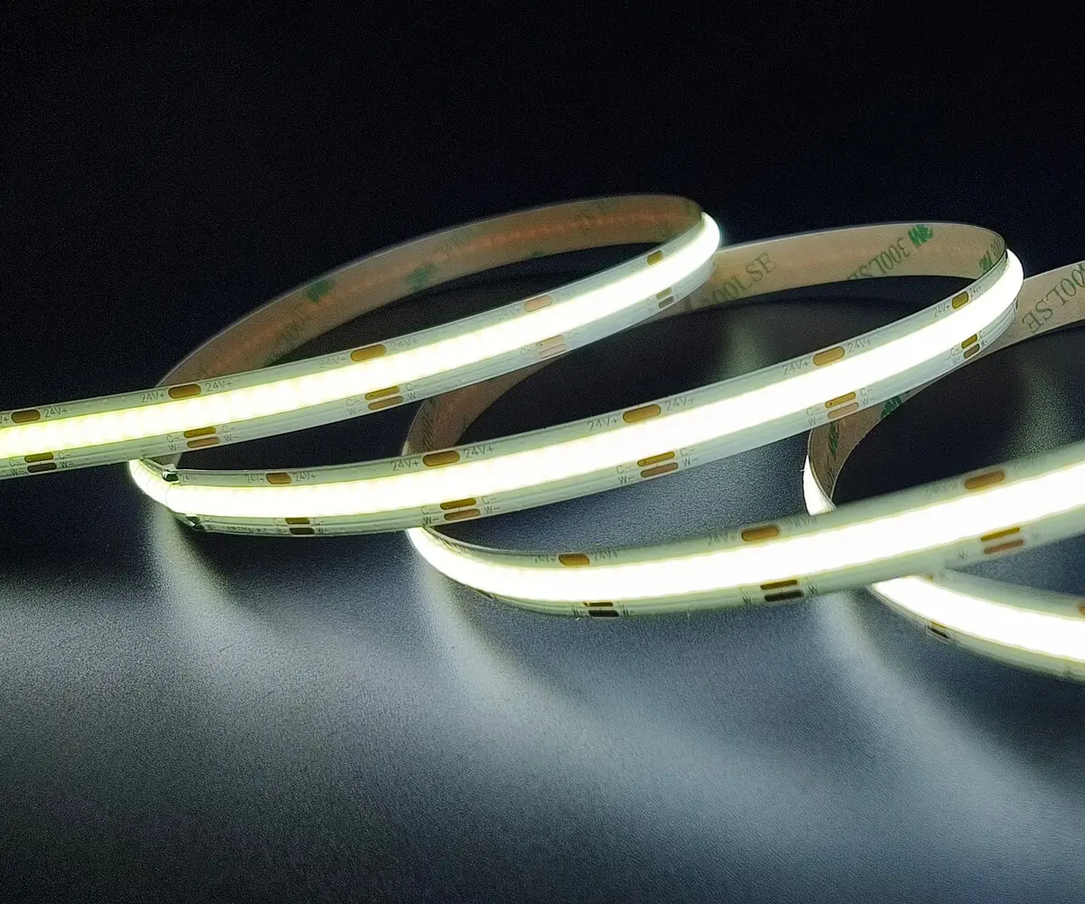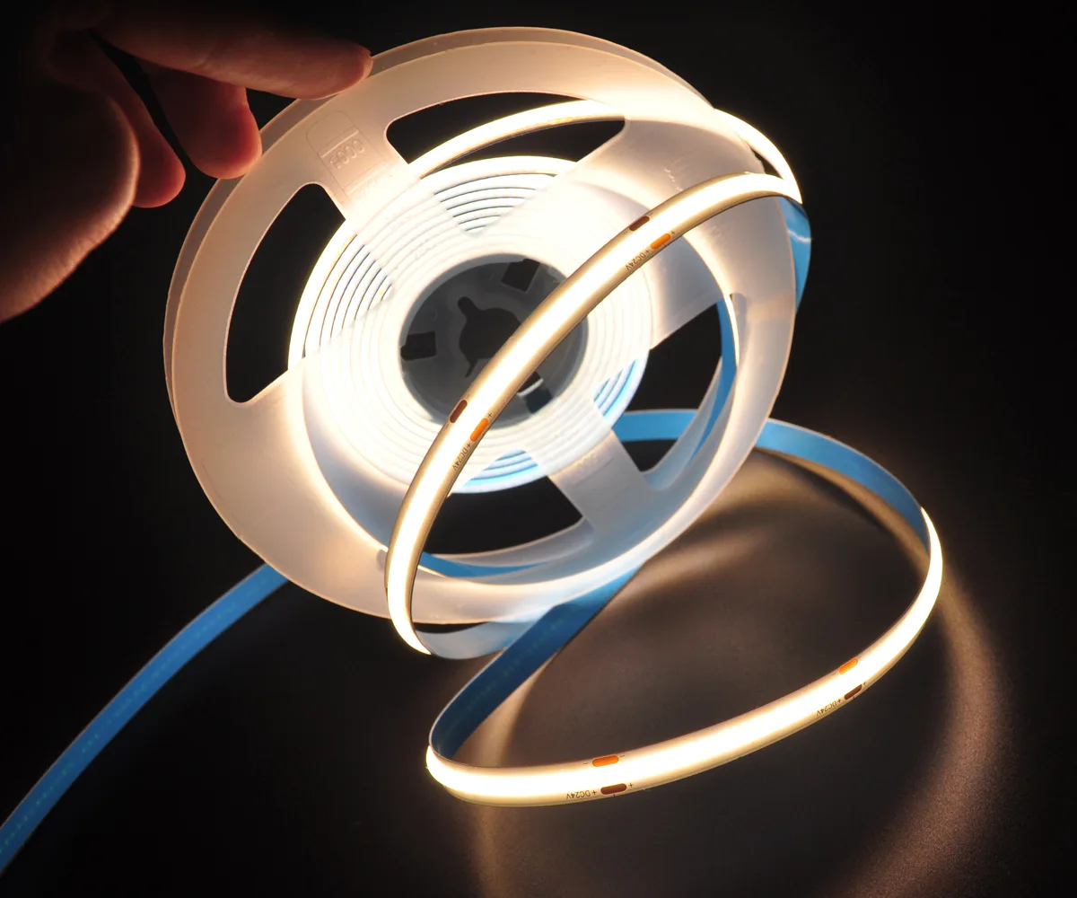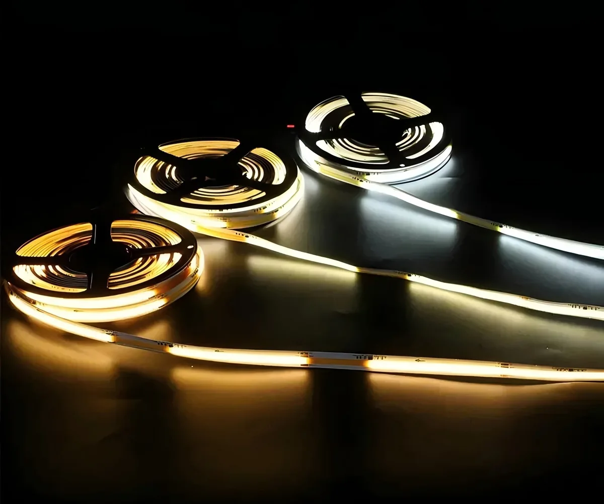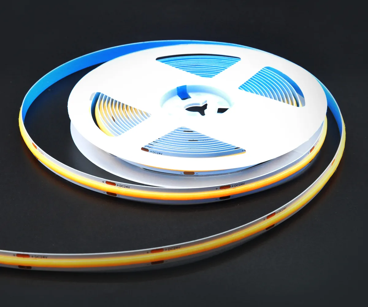 COB (Chip-on-Board) LED strips mount many micro-LED chips directly onto a single substrate and cover them with phosphor to form a dense, integrated light source. The result is a continuous, dot-free linear light rather than distinct LED points.
