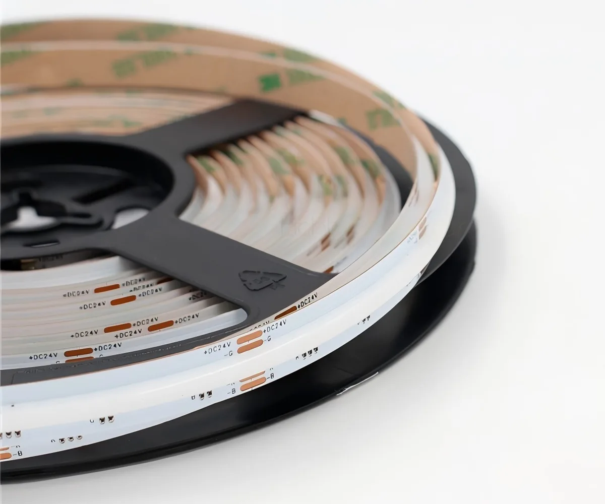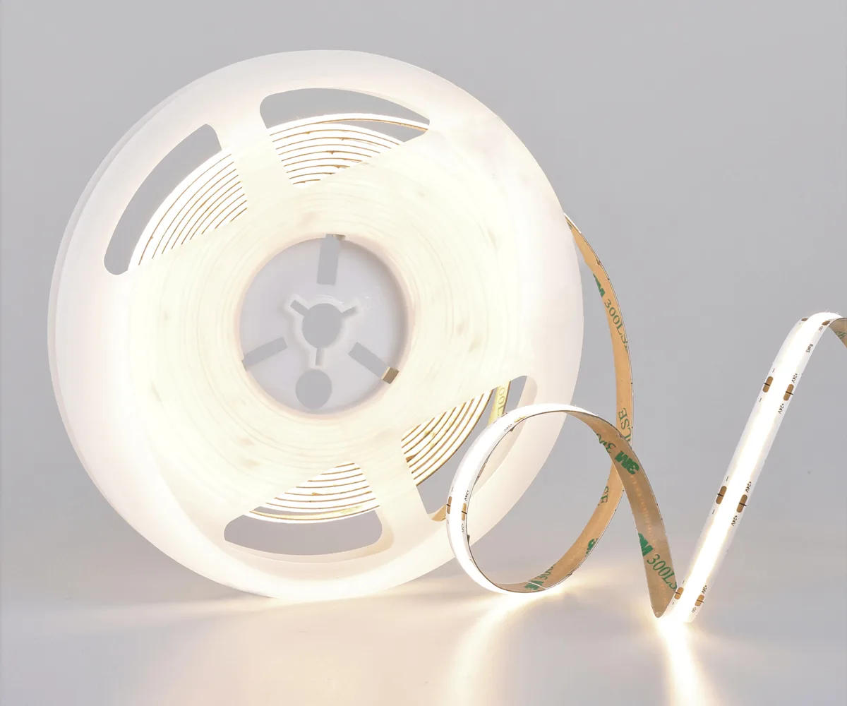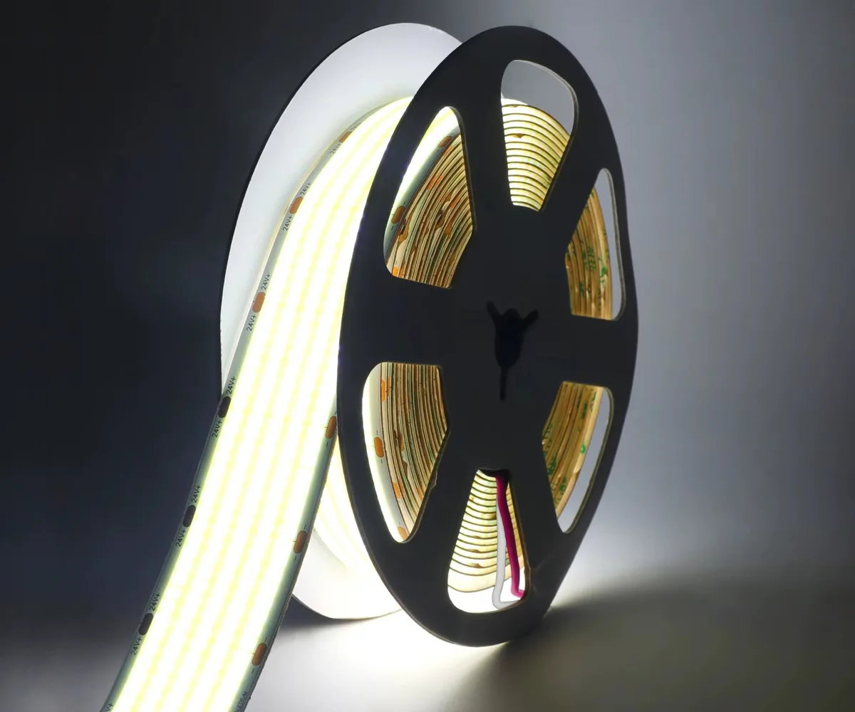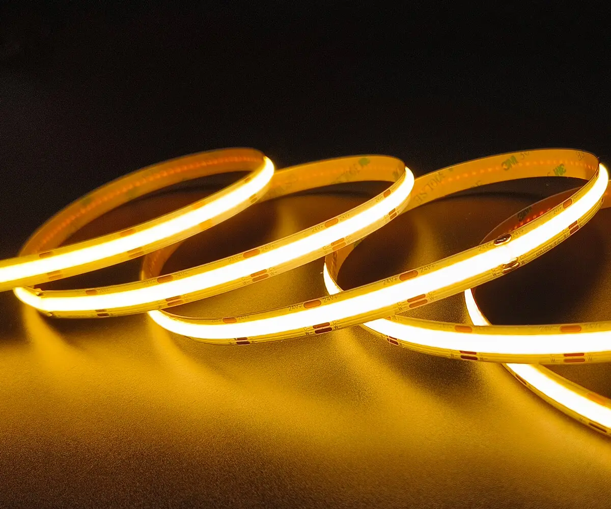 COB (Chip-on-Board) LED strips mount many micro-LED chips directly onto a single substrate and cover them with phosphor to form a dense, integrated light source. The result is a continuous, dot-free linear light rather than distinct LED points.
