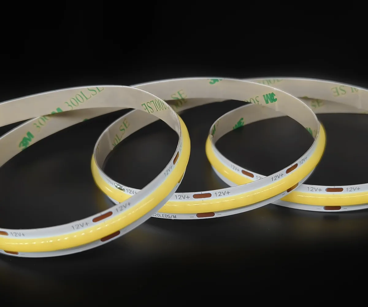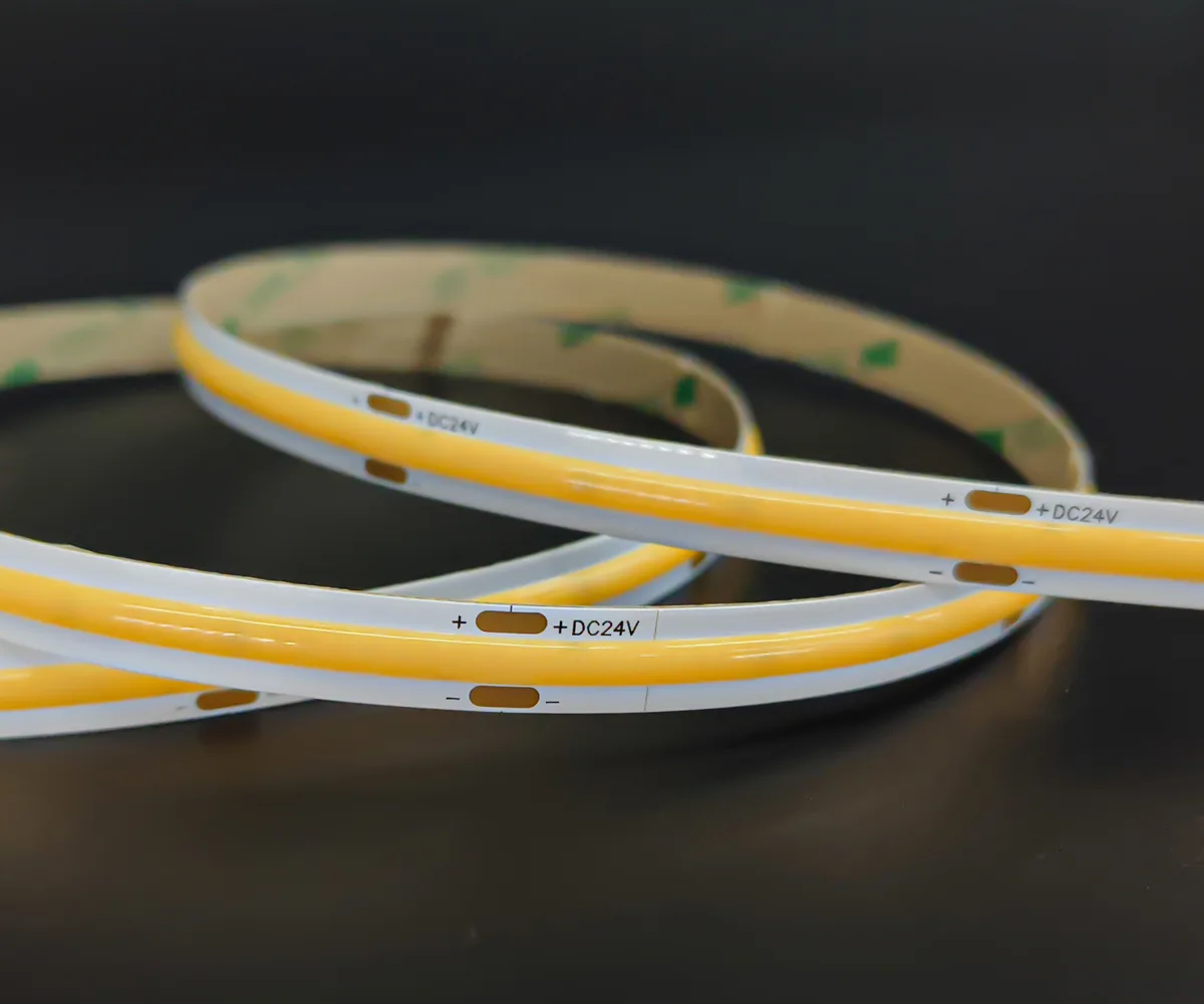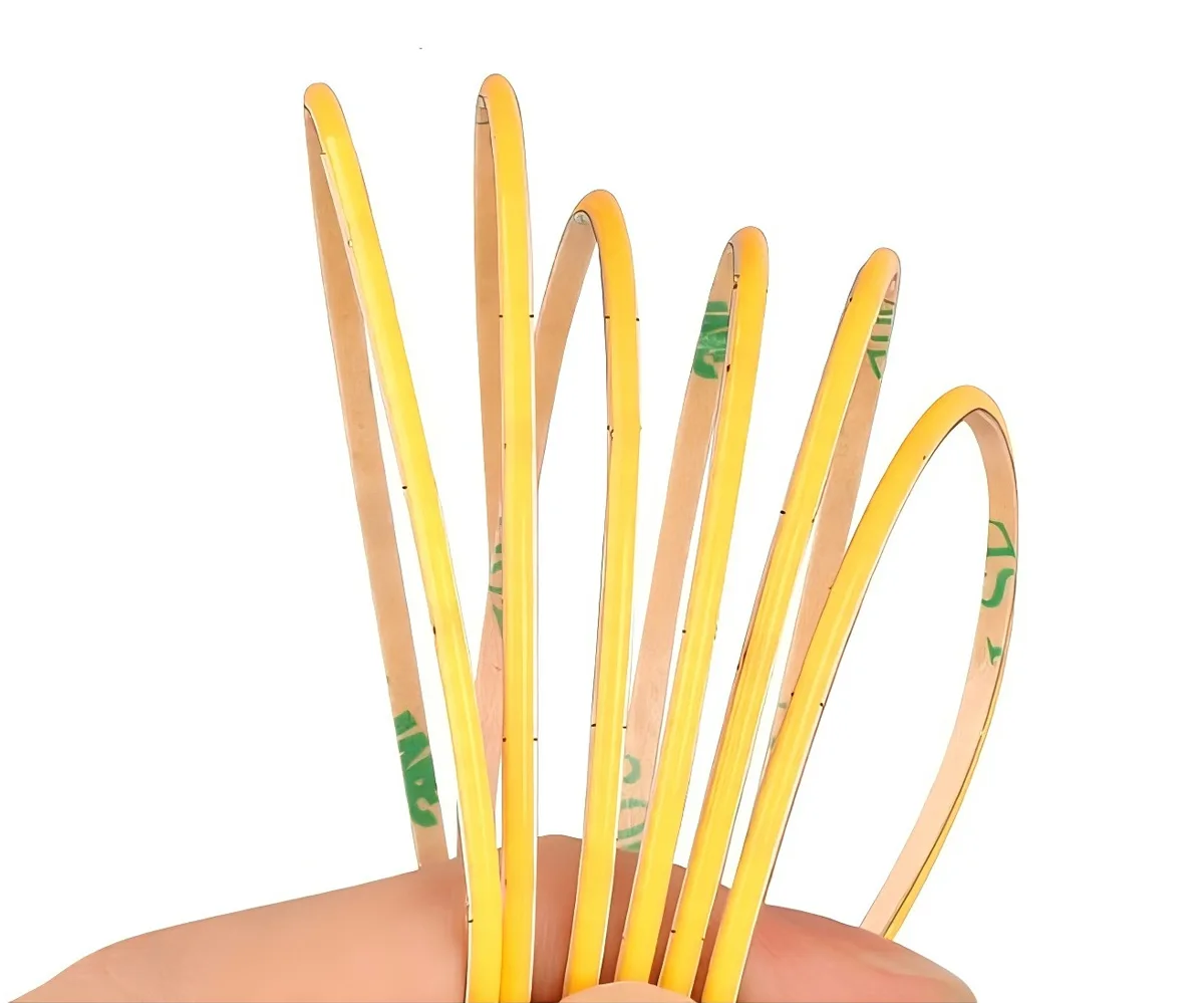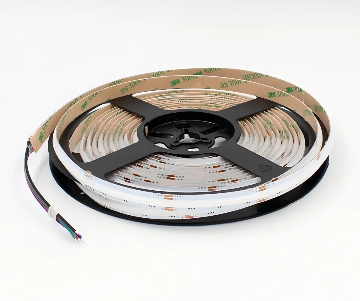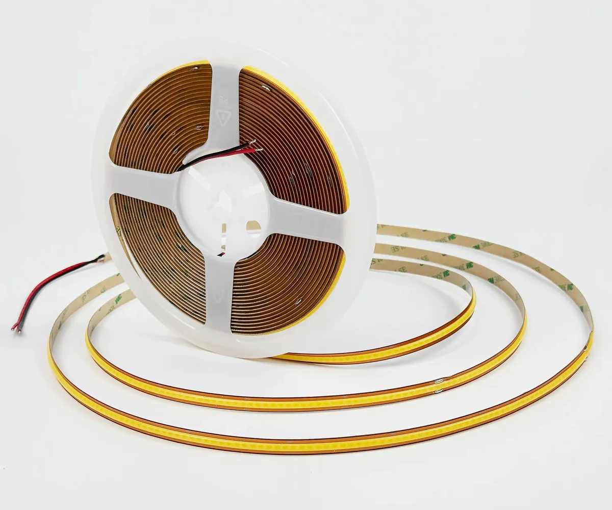 COB (Chip-on-Board) LED strips mount many micro-LED chips directly onto a single substrate and cover them with phosphor to form a dense, integrated light source. The result is a continuous, dot-free linear light rather than distinct LED points.
