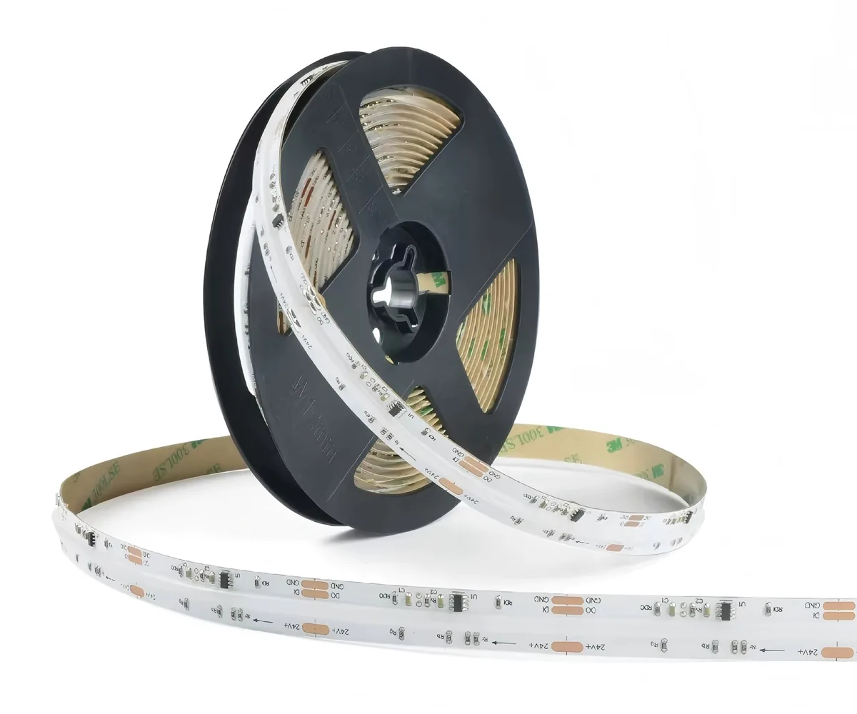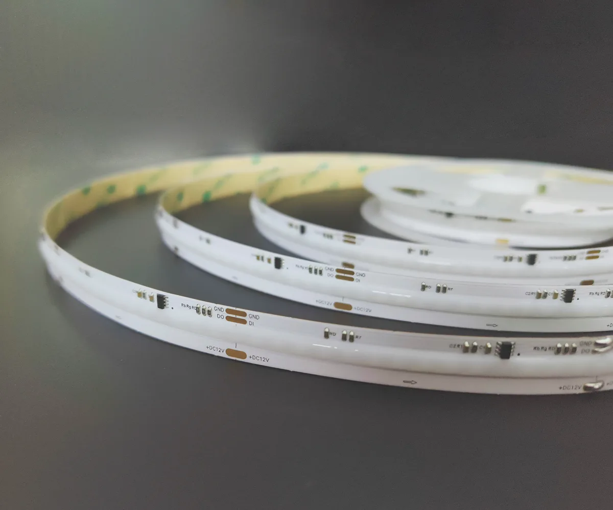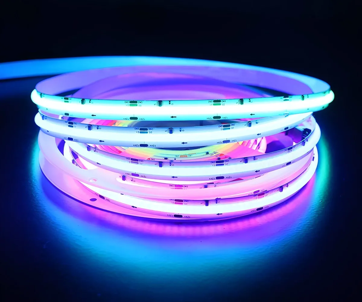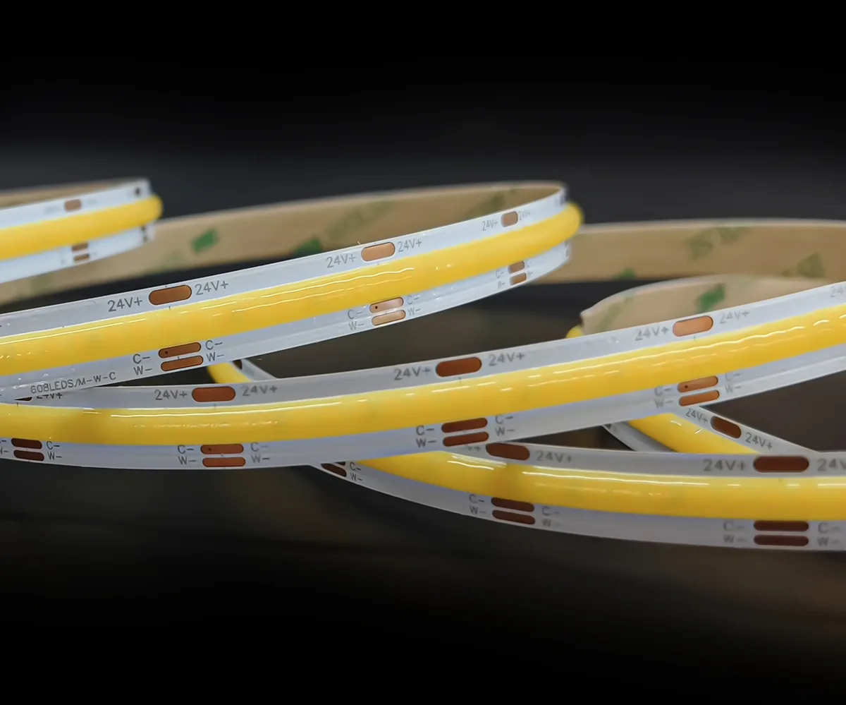 COB (Chip-on-Board) LED strips mount many micro-LED chips directly onto a single substrate and cover them with phosphor to form a dense, integrated light source. The result is a continuous, dot-free linear light rather than distinct LED points.